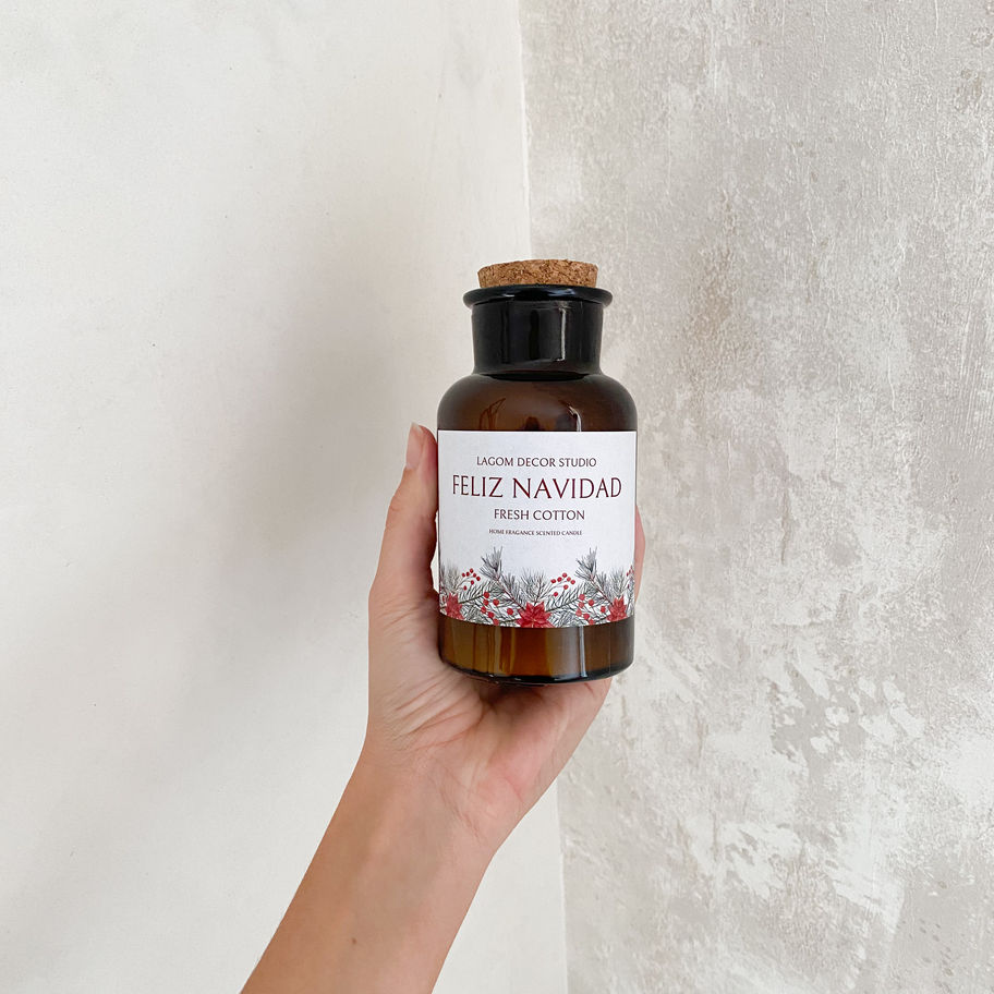 - Una vela con estampado navideño, 20h de duración y olor fresh cotton
